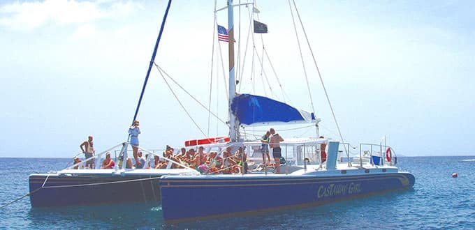 Enjoy the thrill of sailing through the turquoise Caribbean Sea on the Castaway Girl, a catamaran that will take you to Shipwreck Cove for snorkeling. The catamaran is fast, stable and extraordinarily comfortable with spacious sunbathing decks and a large cockpit for those who prefer a bit of shade. You can expect an exhilarating cruise all the way to Shipwreck Cove, which is located on Buck Island. Once Castaway Girl anchors, you will be free to snorkel the surrounding coral reefs. Besides observing an array of tropical fish, you may spot the wreck of a ship that lies in just 25 feet of water. As you will see, these waters are absolutely teeming with marine life. After snorkeling, the bar will open, the Caribbean music will be turned up and the onboard party will begin in earnest.