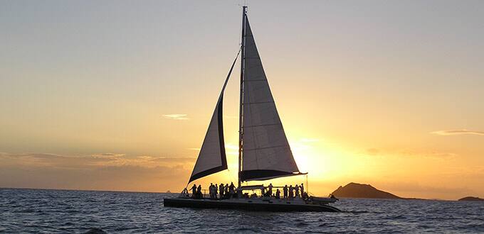 What better way to end your day in fun-filled St. Thomas than on the “Castaway Girl”, a spacious 65-foot catamaran. Relax and unwind as you listen to Caribbean calypso tunes and sail through the picturesque harbor of Charlotte Amalie. Admire its sloping hillside dotted with red roof-tops while you cruise by. Enjoy complimentary chilled champagne, sodas, rum punch and water along with delicious assortments of vegetable platters, fruits and dry snacks. Leave your worries behind and enjoy the casual and pleasant atmosphere around you.