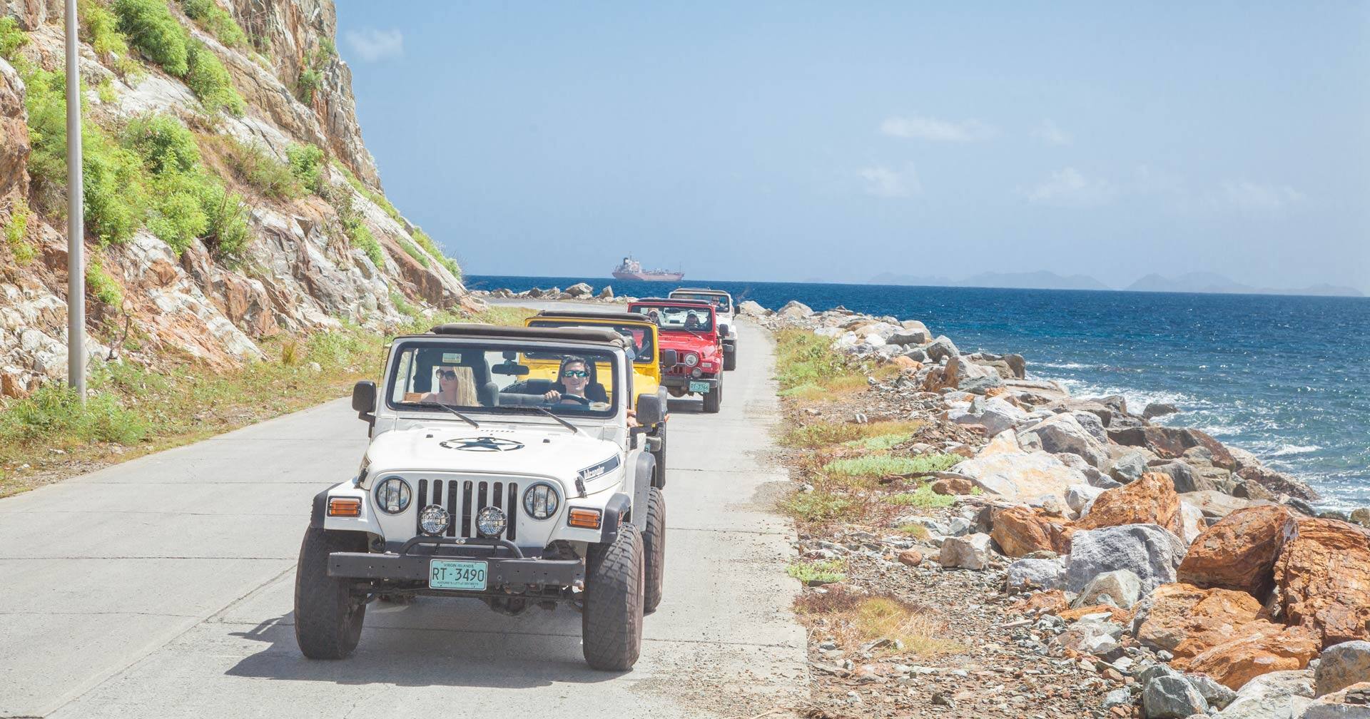 Drive a Jeep through the island’s naturally beautiful terrain and then head off-road to one of Tortola’s most secluded beaches. With the lead Jeep/guide providing commentary via a VHF, you will take in the best of the West End on the way to isolated Smuggler’s Cove. Here, you will be free to relax however you please. You might stretch out on the sheltered beach, stroll along the shore and take a refreshing swim in the sea. In time, you will drive off once again into the tropical landscape, where you will pass beach-blessed Long Bay and the surfer’s paradise of Apple Bay before arriving in the fishing village on Carrot Bay. While browsing its museum, you will behold an impressive collection of shells, all found on Tortola’s many beaches. More spectacular sights await you atop Windy Hill, and at Sky World, an elevated vantage point with 360 views of the British Virgin Islands.