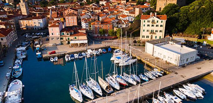 Discover two architecturally rich Italian seaports with distinct Venetian influences just minutes from the border of Slovenia. While walking through the Old Town of often-conquered Trieste, the guide will elaborate on the city’s history, which will seem particularly relevant as you explore the 14th-century Cathedral of San Giusto and the ruins of the medieval complex that surrounds it. You might also view the Canal Grande, a waterway lined with centuries-old palazzi much like the canals in Venice. No wonder – a Venetian designed the Trieste canal in the mid-1700s. Nearby, you will find the little town of Muggia. The Venetian Republic began controlling this fishing village in the 1400s and left an indelible mark, as did Austria. As you stroll the narrow streets of Old Town on your own, be sure to look for Muggia Castle, which is now the private residence of a Muggia-born sculptor. Afterwards, you will transfer to the airport in Venice.
