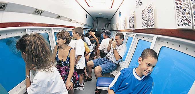 Board the Seaworld Explorer semi-submarine and sit in air-conditioned comfort five feet below the surface of the water. View sea life through large windows and see tropical fish such as Yellowtail Snapper, Sergeant Majors, Parrotfish and Queen Angelfish, as well as delicate colonies of coral. Watch through your private window as a diver is surrounded by hungry fish that he feeds by hand.