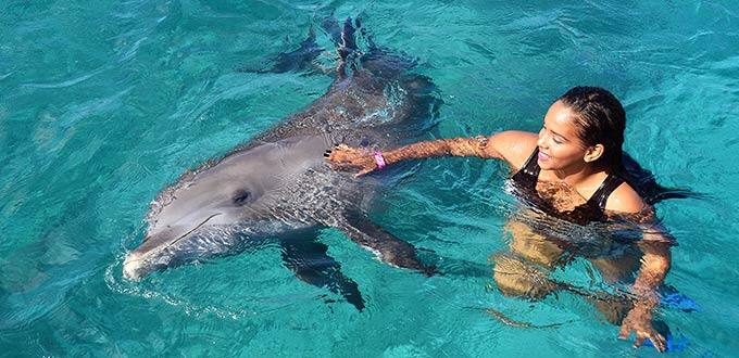 Note: Participants must be able to walk stairs of 6 steps and stand in waist-deep water for 15-20 minutes. Wear your swimsuit and bring a towel. Pregnant women may participate. Dolphin observer ticket available for purchase onboard. Guests who go ashore do so with the understanding that they will be mixing with members of the general public.