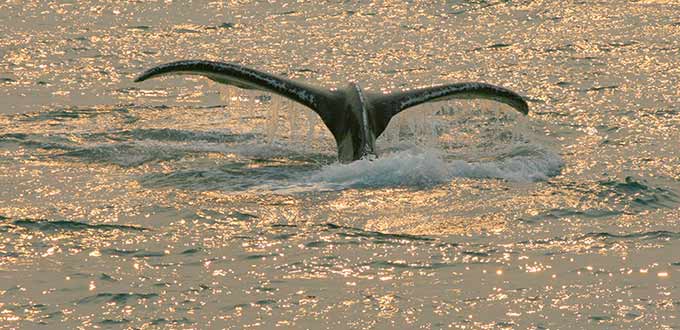 Enjoy a magical evening cruise with a family-owned, Tlingit-operated tour company, proudly sharing the wonders of the region for over 50 years.! Following a short ride to scenic Auke Bay, you’ll board an Alaskan-built expedition vessel specially designed for wildlife viewing. Relax in the warm, spacious cabin as you set out to explore Stephen’s Passage, a pristine marine wilderness surrounded by snow-capped peaks and glaciers. Once whales have been sighted, your Captain will maneuver the vessel to provide you with exceptional viewing and photographic opportunities. Be sure to bring a warm jacket to wear on the topside observation deck. Your onboard naturalist will explain the behavior and habitat of the humpback whale and other wildlife you may encounter, including killer whales, sea lions, porpoise, harbor seals, bald eagles and more. While enjoying the peaceful ambiance of Alaska’s long evening glow you’ll be treated to a variety of appetizers, desserts, and complimentary beverages. A no-host bar offers wine, beer, and soda for an additional charge.