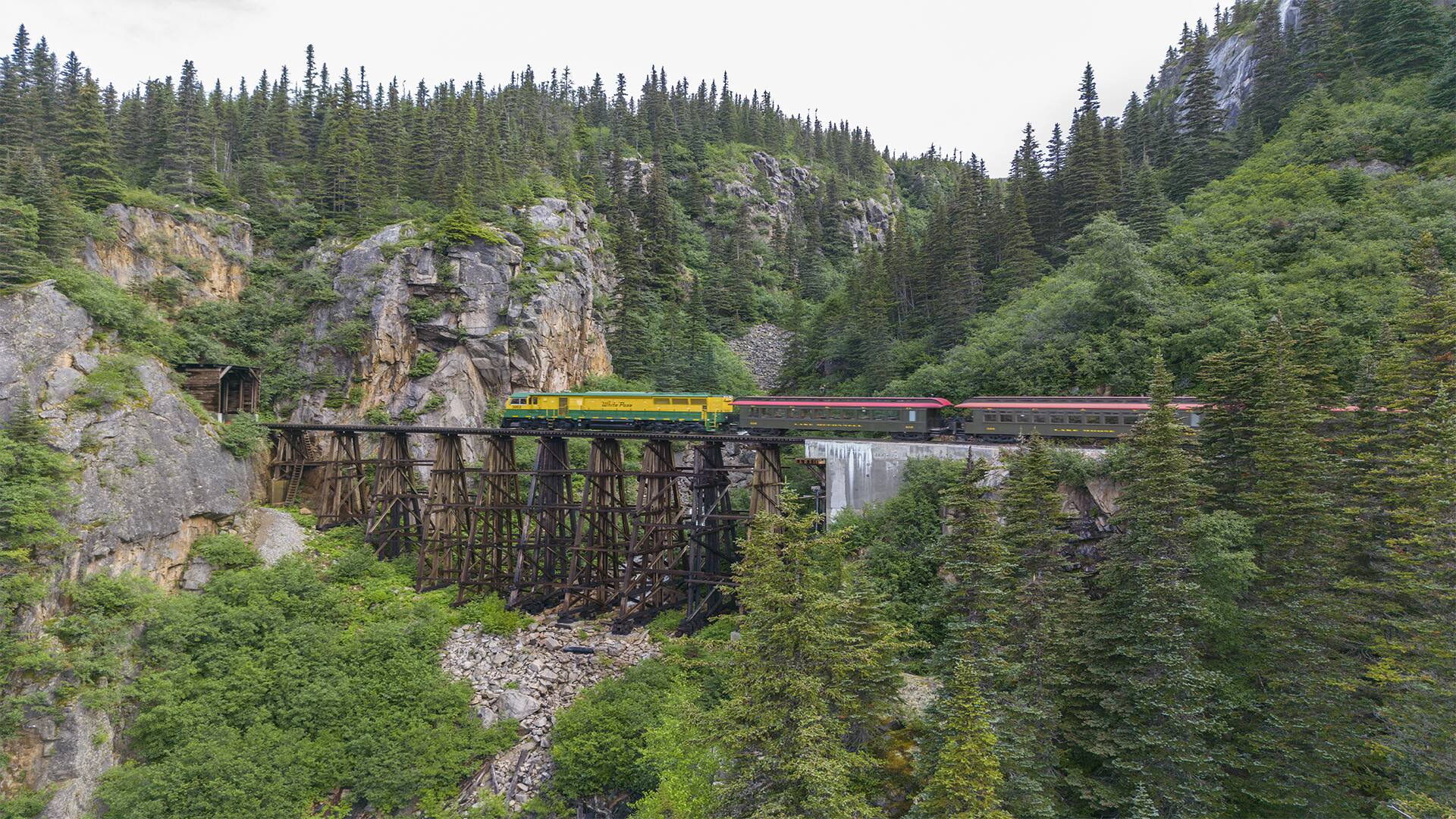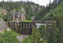 • Ride a narrow-gauge train on a route used during the Klondike Gold Rush.