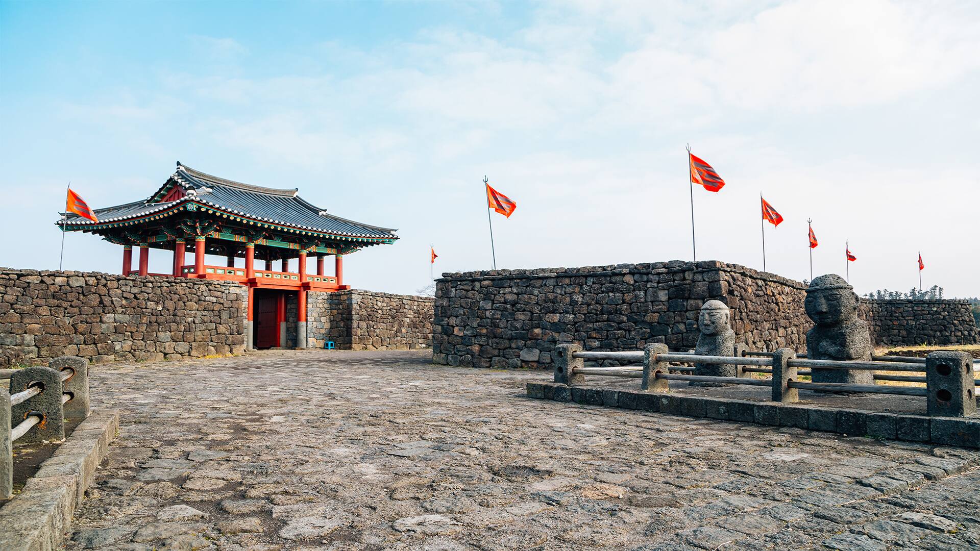 Take in the spectacular view from atop crater-shaped Seaongsan Sunrise Rock and then visit a traditional village that reveals the rich culture and heritage of Jeju Island. After departing from the pier, you will settle in for a leisurely 50 minute drive to Seaongsan Sunrise Rock, a crater named in part because it lies on Jeju’s easternmost shore and attracts locals that gather to watch the sunrise. Formed a millennia ago in a series of underwater volcanic eruptions, the crater looks like a crown because 99 jagged rocks surround the top of the huge circular crater. It is so stunning that UNESCO named it a World Heritage Site. You may walk up the stairs leading to the jungle-covered bowl at the top or remain below. Both perspectives offer spectacular views. Seaongsan, which means “castle hill,” was originally an islet but a thin strip of land now connects it to the main island. The crater is an outstanding example of a lava cone and volcanologists continually study it, as do botanists who come for the endemic flora. Next, you will drive inland to a wide plain at the foot of Hallasan Mountain, where you will find the Seongeup Folk Village. Created as an expression of traditional Korean life, the re-created village contains several rock-walled thatched-roofed houses. Other highlights include Confucian shrines, fortress ruins and ancient government buildings. Many of the traditions and even the dialect spoken here have been handed down over the generations. After visiting, you will re-board your coach and travel back to the pier.