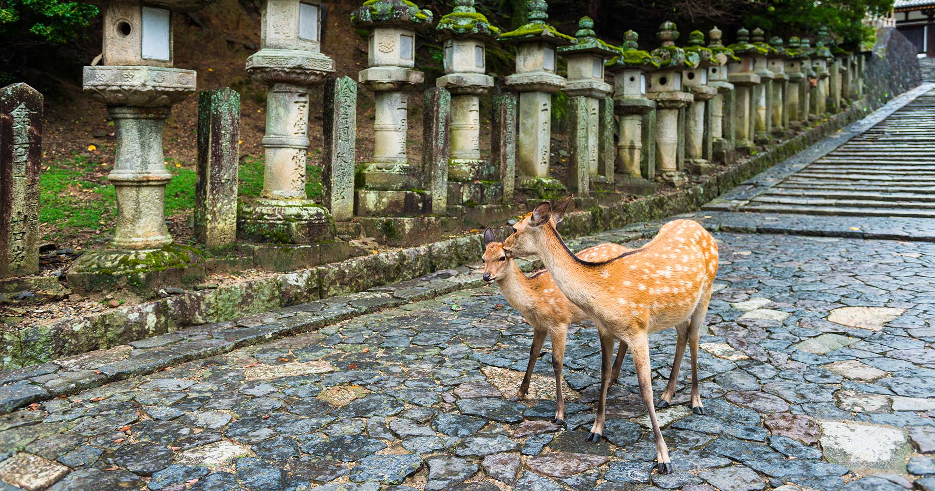 Visit the incredible Todaiji Temple, founded in 752, and best known for its Daibutsu, the world’s largest Buddha statue, sitting 49 feet tall. The eighth century statue is housed in an all-wood building, the Daibutsu-den, considered the largest wooden building in the world. Nara Park, commonly referred to as Deer Park, surrounds the temple. The tranquil park covers 1,295 acres of woodland and is home to over 1,000 free roaming deer. Considered messengers of the gods in the Shinto religion, Nara's deer are a symbol of the city and are designated a National Natural Monument.