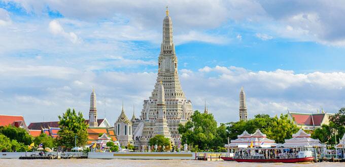 Upon arrival at River City Pier in Bangkok, you’ll embark a boat for a ride along the bustling Chao Phraya River and its canals, or klongs. Along the way, you’ll take in picturesque scenes and photo opportunities of typical Thai canal life. Stop for a visit of the magnificent Wat Arun (Temple of Dawn) before proceeding for lunch at a local restaurant. Standing at the river’s edge, it is one of the most beautiful and best-known temples in the city.