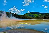 Explore a thriving center of breathtaking thermal activity and traditional Maori culture during this scenic, full day visit to the historic spa town of Rotorua. Head via Te Puke, the world's largest kiwifruit growing region to the geothermic wonderland of Rotorua. Stop at the Agrodome to watch the country's best-trained champion rams parade on stage, and a sheep-shearing demonstration. The highly trained sheepdogs will finish the show with a display of sheep mustering. Drive past the Rotorua lakefront where you may see a variety of waterfowl as well as several local landmarks before arriving at the Skyline Gondola terminal. Here, you’ll embark one of the aerial gondolas for a breathtaking ride up the side of Mount Ngongotaha, enjoying panoramic vistas of Lake Rotorua, the city and surrounding areas. Arriving at the top of the mountain, the Skyline Restaurant with its unparalleled views is where you’ll be treated to a buffet Visit Te Puia, the home to the internationally renowned spouting Pohutu geyser and boasts silica terraces, pools of boiling mud and dramatic steams vents. Your Maori guide is keen to share the fascinating local lore and legends of this wonderful country. A strong sulfur smell, a product of the intense thermal activity, will fill the air. Remember to bring your cameras on this exciting geothermal experience.