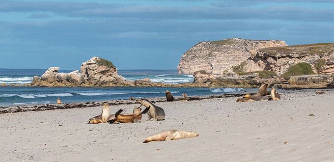 • Travel across Kangaroo Island to visit a colony of rare Australian sea lions in their natural habitat.