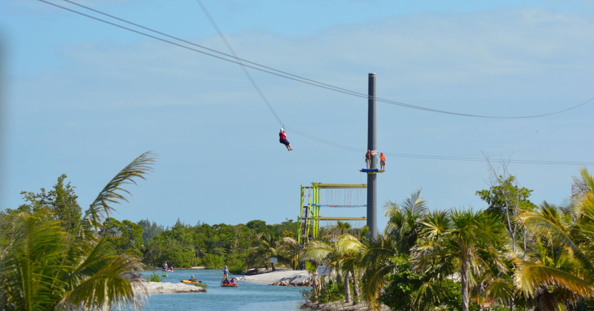 Whether you are a zipline novice or aficionado, satisfy your need for speed and adventure when you fly and experience the adrenaline-filled ziplines. You’ll be met at the keeper’s house, located at the base of the Flighthouse by the flight crew who will provide you with a safety orientation, assist with your equipment selection and fitting and a technical flight briefing covering the upcoming flight mission. Once outfitted and briefed, you’ll be transported up to your designated flight deck via the Flighthouse elevator where your adventure begins. Here, perched over 100 feet in the air you will experience the wind gusts as you soar 100 feet above the Manatee Lagoon. Consists of three zips crisscrossing Harvest Caye. Each zip is long enough for you feel the rush and enjoy the sensation.