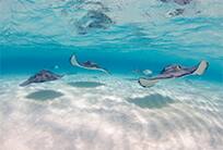 • Interact with southern stingrays while standing in the shallows of Stingray City.