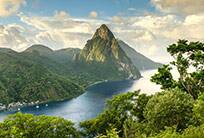 Your bus will pass through the bustling city of Castries which consists of the colorful marketplace and the Immaculate Conception Cathedral, with its magnificent paintings by a famous local artist - Dunstan St. Omer. A panoramic view of the island can be seen from Morne Fortune before traveling through the lush Cul de Sac and Roseau banana plantations on to picturesque Marigot Bay of movie fame. Continuing your scenic drive along a winding road on the edge of a rainforest with an abundance of tropical flowers and trees, you’ll reach the town of Soufriere. Here, the dramatic Pitons, rising more than 2,500 feet/760 meters, tower over the entire area.