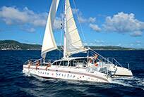 Join this catamaran for an exhilarating sail to Little Buck Island's Turtle Cove. Your crew will provide you with snorkel gear and guidance for an unforgettable fun filled marine life adventure. The warm waters of the Caribbean Sea feature numerous species of coral reefs and tropical fish. You can't miss spotting the resident green sea turtles gliding along in their natural habitat while stopping to graze on the sea grasses below. Don't want to get wet, relax on the spacious deck. The fun continues on your return sail - join the party and enjoy the music and complimentary beverages.