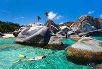Cruise the ferry over to the neighboring island of Virgin Gorda to relax on the beaches at The Baths, a unique seascape dominated by enormous boulders that form hidden grottoes and tidal pools. After disembarking on the island, you will enjoy a short but scenic ride to the Top of the Baths restaurant, where the guide will explain what to expect along the coast below. You will descend by following a sandy trail to horseshoe-shaped Devil’s Bay, whose translucent waters are ideal for a refreshing swim. Gargantuan boulders spill out from the beach into the sea, making for an unforgettable experience. In time, the guide will lead you through the massive seaside boulders to The Baths, a similar but more popular beach. You may find the setting even more spectacular as many of its granite boulders measure more than 40 feet across. There too you will be free to do as you please.