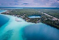 A must for nature lovers, this adventure presents the natural wonders within the Bacalar Lagoon; spectacularly picturesque and full of wildlife. Your exploration will begin aboard a four-person raft that the guide will navigate through the freshwater Bacalar Lagoon. Protected on all sides by thick mangrove forest, the waters of the pristine lagoon are typically as smooth as glass and every imaginable shade of blue and green. The ever-changing hues are so captivating that the waterway is known as the Lagoon of Seven Colors. The setting is also extraordinarily serene, as no motorized boats are permitted on the lagoon. As you glide along, you can expect to see all sorts of wildlife, especially water birds. In time, you will stop for lunch and enjoy free time to wander about on your own. The water doesn't just look inviting, it is wonderfully refreshing and ideal for swimming. Lunch includes one glass of sparkling wine during the ride and one water bottle or soft drink with flavored water and Mexican antojitos.