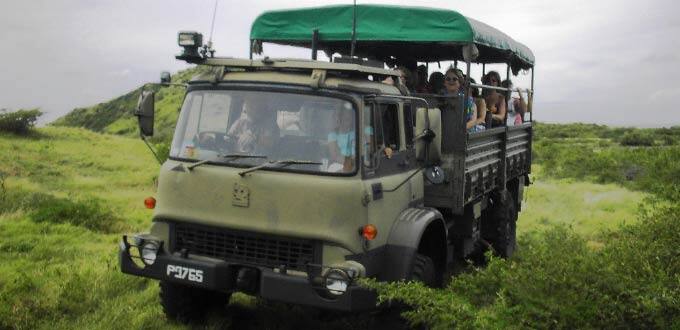 Imagine being on board a 4x4 Ex-British Army Troop Truck and being taken on an island adventure across the crest of a panoramic peninsula mountain range. Stop at strategic lookouts for breath taking view. After boarding the 4x4 Troop Truck, proceed along the outskirts of Basseterre, the capital, passing through the resort area of Frigate Bay. Upon reaching the crest of Timothy Hill, a brief photo stop is made to experience the views of this pristine area. Drive across the winding mountain highway, before stopping at another photo locale with excellent views of the rugged coastline and Basseterre.