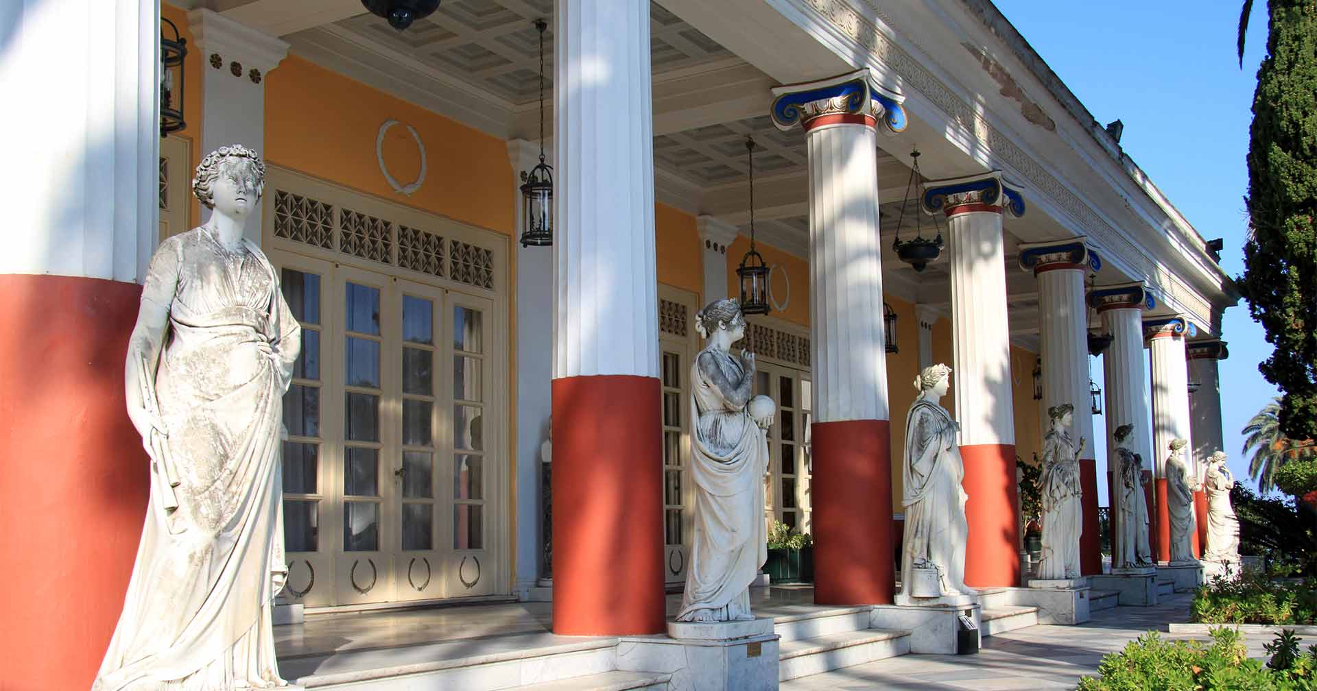 Discover the best of Corfu on this tour. You’ll tour the island, visit a stunning palace and enjoy a traditional lunch with live entertainment at a local taverna. Drive through Corfu and arrive at Mon Repos Palace built by order of Empress Elizabeth of Austria and completed in 1891. The empress had fallen in love with the natural beauty of the island during her 1861 visit and also developed a great appreciation for Greek history and mythology.