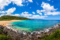 Discover Oahu's North Shore – surf mecca and home to the perfect wave. Travel past pineapple and sugar cane fields to the island's well-known surfing beaches, stretching for seven miles along this coast. They include Waimea Bay, a prominent spot in the early days of big wave surfing in the 1950’s, two-mile-long Sunset Beach, and the Banzai Pipeline, where waves breaking over a sharp reef make it one of the world’s most dangerous surfing scenes. Continue past shrimp farms, and catch a glimpse of the small island known as Chinaman's Hat for its interesting shape. Shop for irresistible macadamia nuts and other local products at the Macadamia Nut Farm Outlet. On your way to the airport drop by the Byodo Temple, a scale replica of a temple in Japan constructed entirely without nails and surrounded by a lovely and tranquil garden.