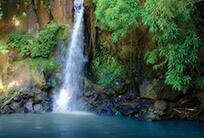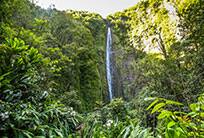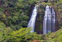 Board a flat-bottom motor launch for your journey up the tranquil Wailua River as it floats past lush jungle landscapes on the way to Fern Grotto. This beautiful lava cavern, dripping with ferns, forms a natural amphitheater with excellent acoustics. At the grotto, keeping with island custom, a chorus will serenade you with the traditional Hawaiian Wedding Song. Travel by moto coach into the valley of the Sleeping Giant, where you'll find Opaekaa Falls, cascading down the hillside into a hidden pool.