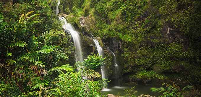 This full-day tour includes an alfresco picnic-style lunch at a Hana beach park. After lunch, guests delight in discovering Wai'anapanapa State Park, with numerous unique scenic features. Stroll on the black sand beach, photograph lava sea arches, or view beautiful lava formations. The return journey offers an optional swim to take a dip in a freshwater pool under a cascading waterfall, so bring your swimsuit underneath your clothes and a towel for - a perfect "Heavenly Hana" experience. An opportunity to swim at either Pua'a Ka'a ( waterfall ) or Waianapanapa ( black sand beach ) but not both, is offered to guests. The optional swimming opportunity is determined based on safety conditions.