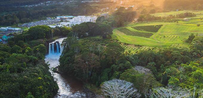 Your experienced guide will provide information and narration as you drive through the "Hilo Walk of Fame" known for all the banyan trees planted by celebrities. Visit Liliuokalani Gardens, the largest ornamental Japanese garden outside of Japan. Your experienced guide will provide commentary of Hilo Town as you make your way to Wailuku State Park and Rainbow Falls.