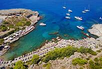 One of the island's most impressive lookout points is the Acropolis of Lindos, where you will enjoy a panoramic view of serene St. Paul's Bay. Atop the acropolis stand numerous temples, sanctuaries and residences, including the 4th century B.C. Doric temple of Athena Lindia and the remains of the Governor's quarters.
