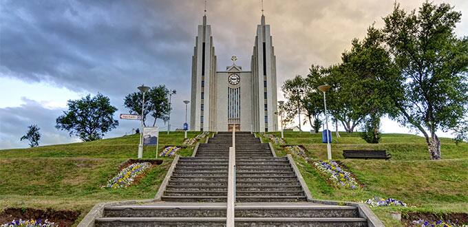 Take an unhurried stroll through Akureyri, set majestically between fjord and mountain near the Arctic Circle. Discover its colorful cultural life and learn about its 16th-century origins as a remote Danish trading post. Foremost among the landmarks you’ll encounter is a hilltop Lutheran church whose modern design has become a symbol of the city (outside visit). It was spirited here for safekeeping after Coventry Cathedral was bombarded by air raids during World War II, and never went back. Then we weave our way uphill to one of the northernmost botanic gardens in the world. There you can find a surprising number of alien taxa, beside Icelandic native species. The charming coffeehouse in the garden is a popular meeting place for both locals and foreign visitors. On the way back to the center, we will pass Akureyri Junior College which is among the oldest and best-known educational establishments in Iceland. At your guided walk’s end, you’ll be in midtown and free to either head back to the pier or – better yet – spend awhile exploring the cool design shops and Icelandic eateries along pedestrian-friendly Hafnarstæti street, just near the harbor.