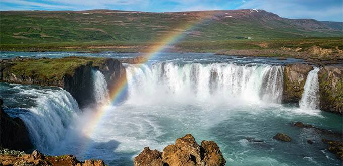 • Hear the mighty “Waterfall of the Gods” – Godafoss – roar as it thunders over a wide horseshoe cliff.