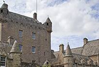 • An elegant white-stone chateau, distinct from typical dark Scottish castles, Set amidst lush formal gardens with sweeping views of the sea.
