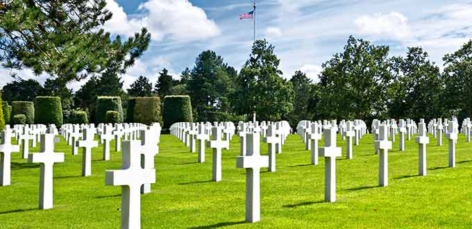 Drive to Port en Bessin or stay in Arromanches for lunch before heading to Colleville Saint Laurent for a stop at the American Cemetery where more than 9,000 marble crosses stand aligned in an impressive site overlooking Omaha Beach. A memorial, inscribed with a map of the operations and preceded by a pool, stands in the central alley surrounded by trees. Drive to Pointe du Hoc, which was heavily fortified by the Germans to serve as an observation post. During D-Day, American troops climbed the cliffs with rope ladders. After witnessing part of World War II, reboard your coach for the return drive to Le Havre.