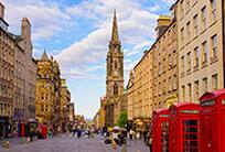 History and beauty come together in the city of Edinburgh. Arrive at Princes Street, with its array of fine stores on one side, and the beautifully laid-out formal gardens on the other. Visit the imposing Edinburgh Castle, home of Scottish Kings and Queens for centuries, perched on its rocky site 445 feet above the city. See the 15th-century Old Royal Palace which houses the Scottish Crown Jewels and the apartment in which Mary, Queen of Scots gave birth to the future King James VI of Scotland who also became James I of England. This castle has witnessed many tense moments in its thousand-year history. Take a drive through the Old Town, and see the historical area known as the "Royal Mile," Castlehill, Lawnmarket, High Street and Canongate with delightful multi-storied houses and quaint side streets. Pass spectacular Holyrood House, the official Scottish residence of the Queen and the new Scottish Parliament building.