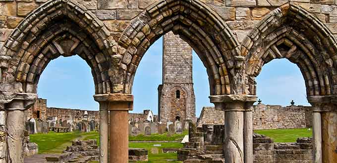 • Stop for photos at the atmospheric ruins of St. Andrews Cathedral, a favorite for visitors and photographers alike.