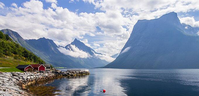 Behold some of Norway’s most gorgeous fjords from ferries that cruise between the endless string of islands along the country’s western coast. The views will be dramatic the entire way, as you will cruise past towering mountain peaks, precipitous cliffs and teeny villages such as Urke along the northern shore of Norangsfjorden. Some of the fjords are arms of larger waterways such as Hjørundfjord, which cuts inland between the jagged Sunnmøre Alps. When not on the water, you will drive through wild areas such as the Norangsdalen Valley, a narrow landscape that rock slides and avalanches have shaped through the centuries. In 1908, one of those natural disasters dammed the Lygna River and permanently submerged the surrounding village, parts of which can be seen in the shallows. After ascending to the Ljoen lookout, you will enjoy a spectacular view of Geiranger, a fjord that UNESCO has declared a World Heritage site for its outstanding natural beauty.