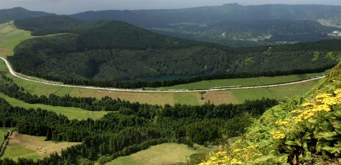 Depart from Ponta Delgada towards Faja de Baixo to visit the pineapple greenhouses. Here you’ll learn how the world's most famous pineapple is produced in a unique and traditional method. Your tour continues along the coast to Vista do Rei viewpoint from where you can enjoy the marvelous view of the twin lakes which lay in the crater of the extinct volcano Sete Cidades. The calm of the waters make a striking contrast with the steep slopes of the crater, creating a fascinating sight. Next stop is at Santiago Lake's viewpoint, recognized by its peace and the unique landscape.