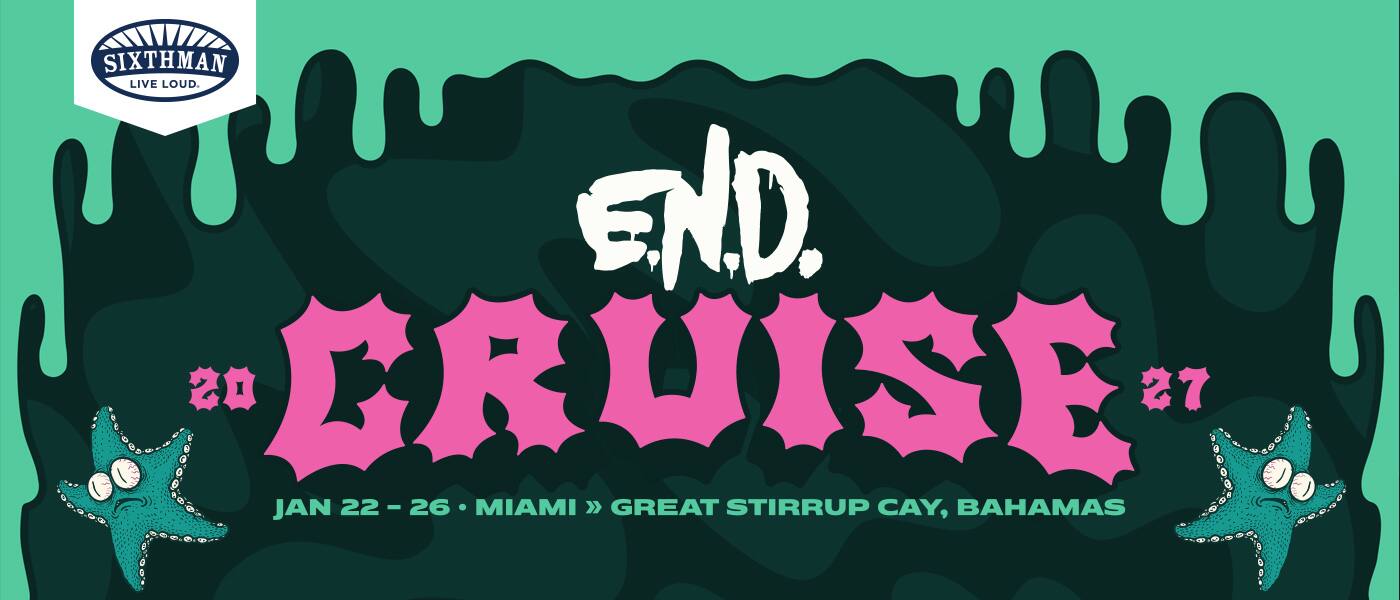 E.N.D. Cruise is back for year freakin' five — making it our longest commitment ever. Set sail from Miami to Great Stirrup Caye, Bahamas, January 22-26, 2027, aboard the Norwegian Joy, hosted by Matt Cutshall & Emo's Not Dead.